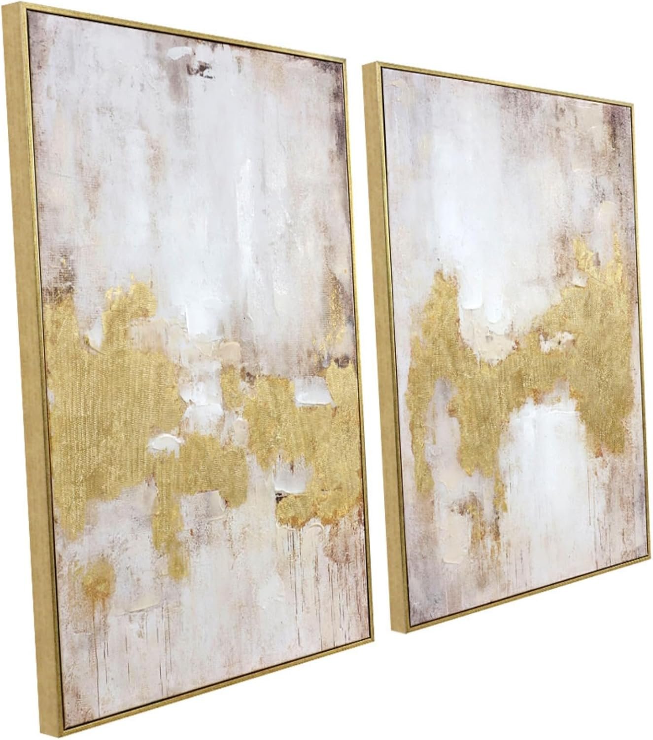 2 Piece Gold and Neutral Abstract Wall Art – Modern Textur...
