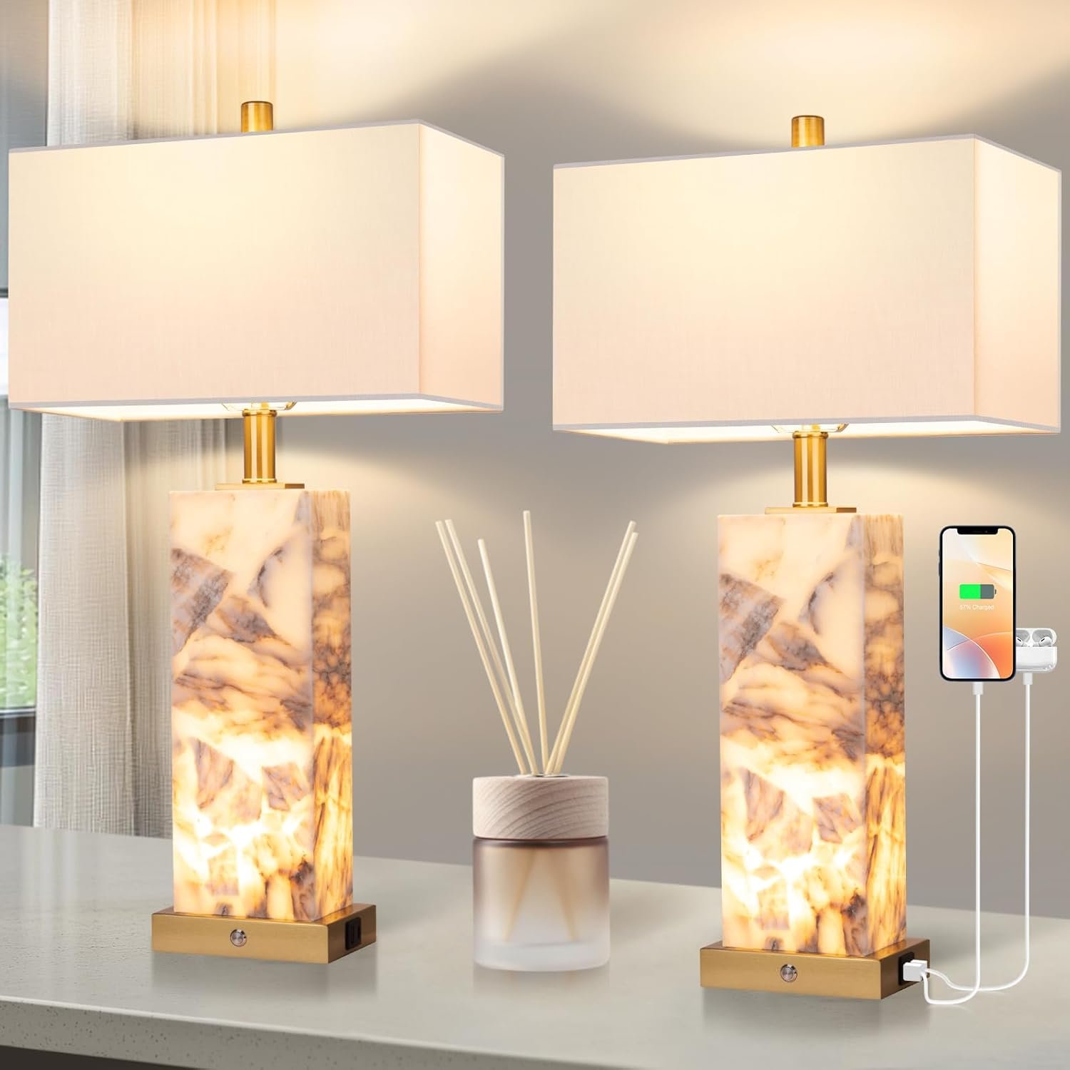 25.6″ Alabaster Lamp, Marble Lamp Nightstand Lamps Set...