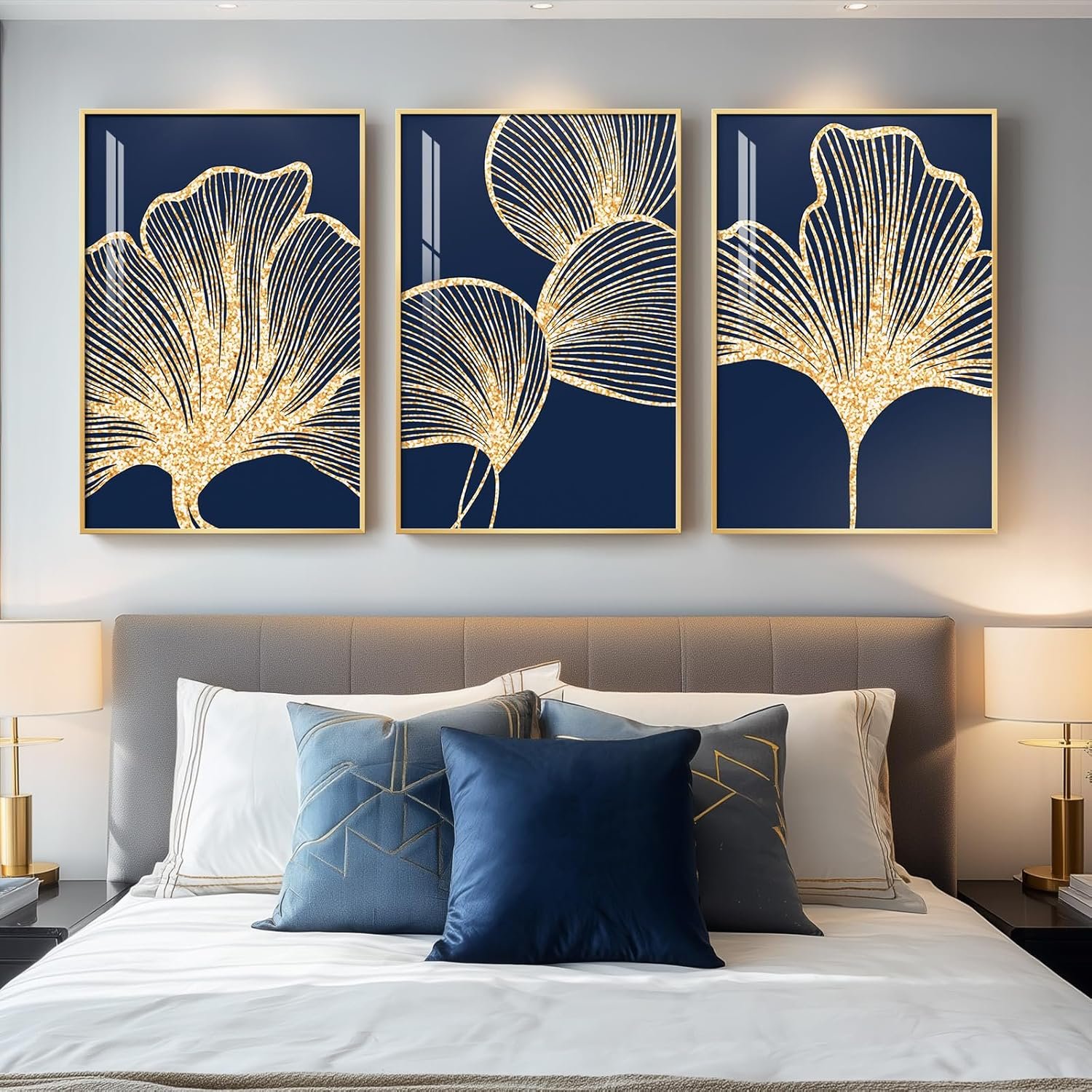 Framed Modern Luxury Wall Art for Bedroom, Large Navy Blue a...