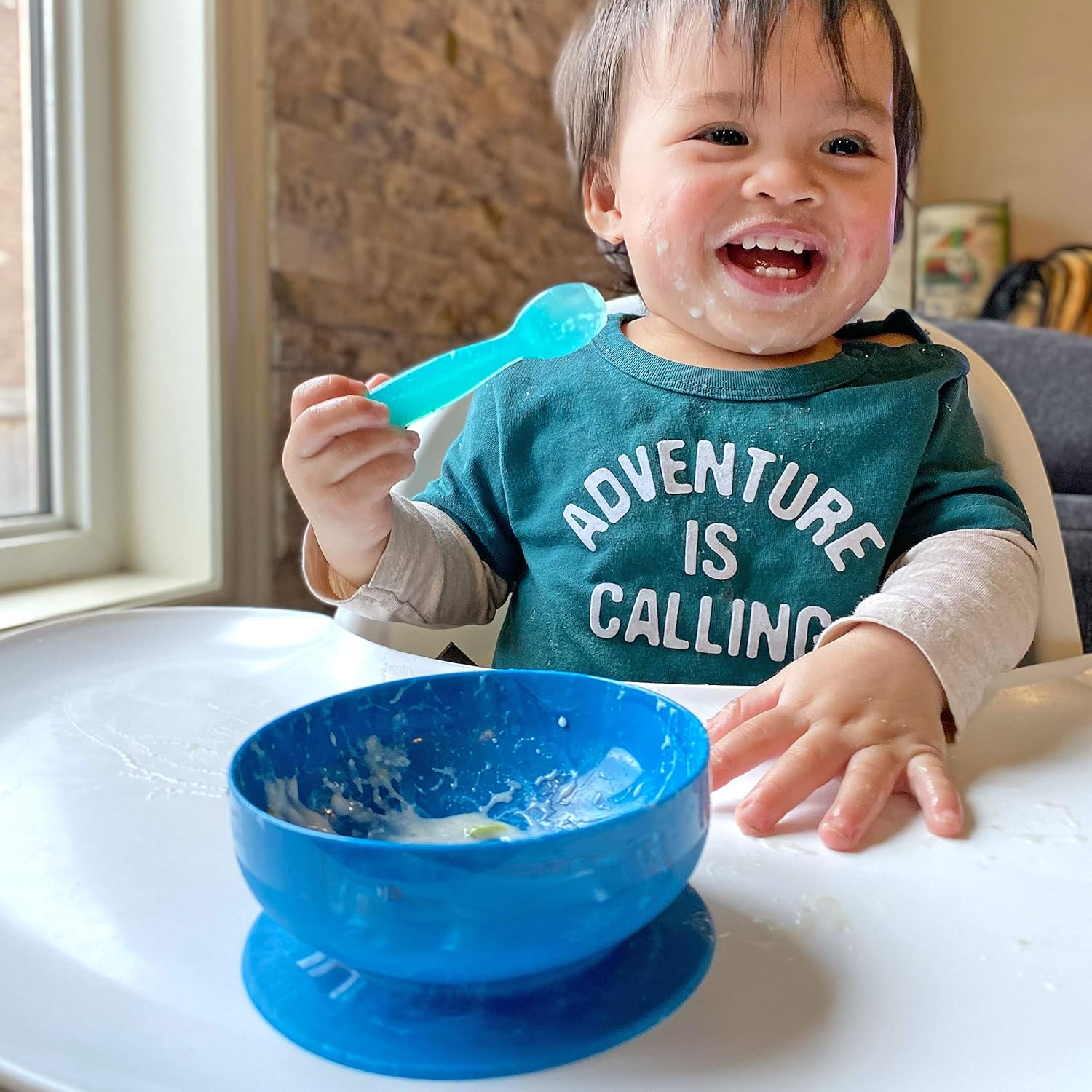 Stop the flipping and spilling with our powerful suction grip! Bowls can be a challenge when learning to feed and scoop with utensils. Our signature Dual-flex Technology uses all-silicone to produce a durable bowl with firm walls and a STRONG suction based that will lock onto any smooth surface.