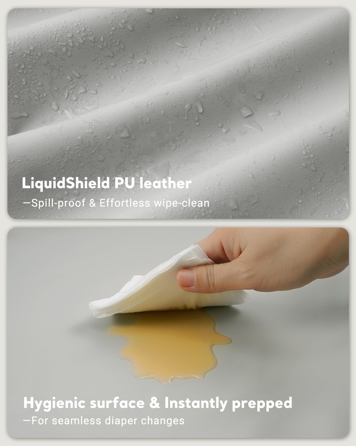 This vegan leather changing pad is everything I needed — waterproof, wipeable, and extra thick for comfort. The material feels buttery soft yet durable, and it is so easy to clean after diaper changes. I love that it is non-slip and stays in place on the dresser or crib.